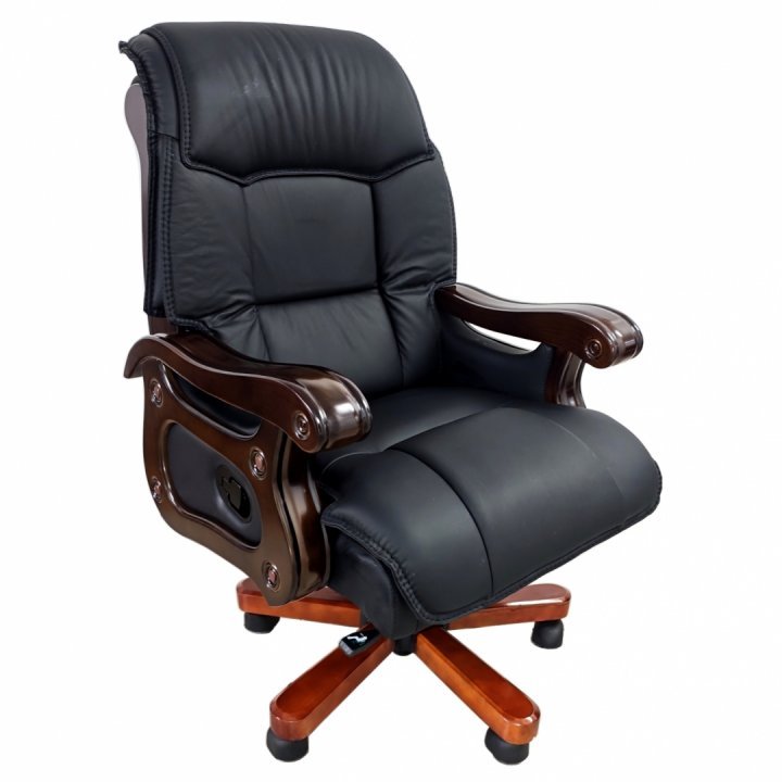 Scaun birou directorial din lemn tapitat cu piele naturala, calitate premium, culoare maro. Usor de intretinut si curatat. Inaltime reglabila, mecanism balans.